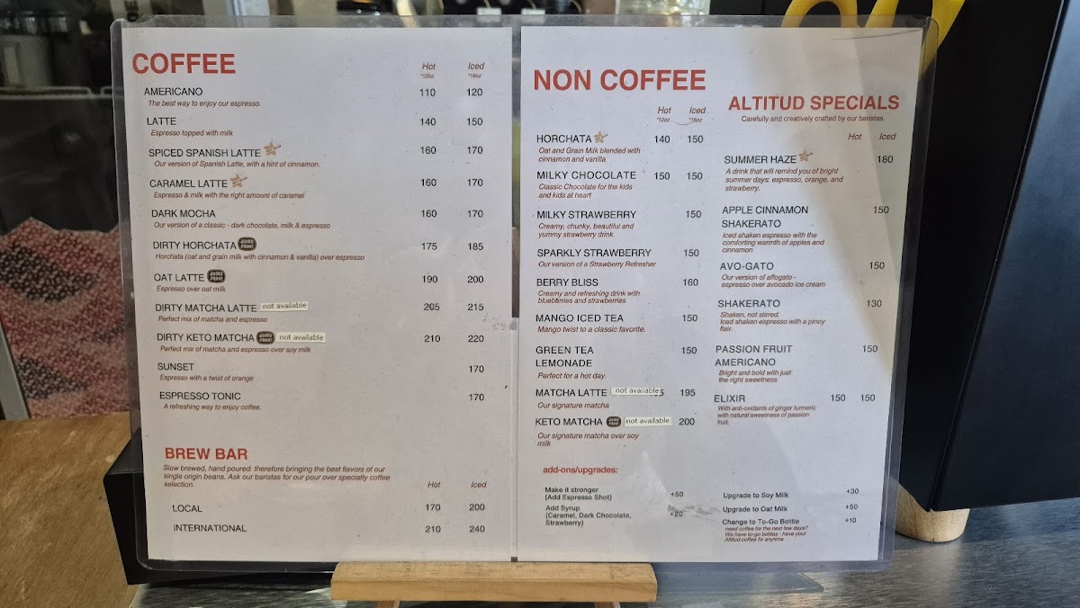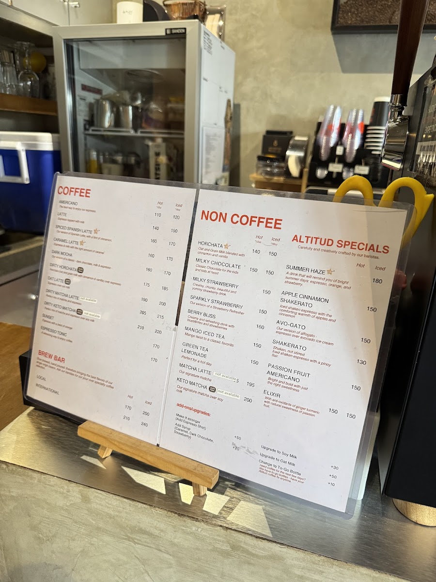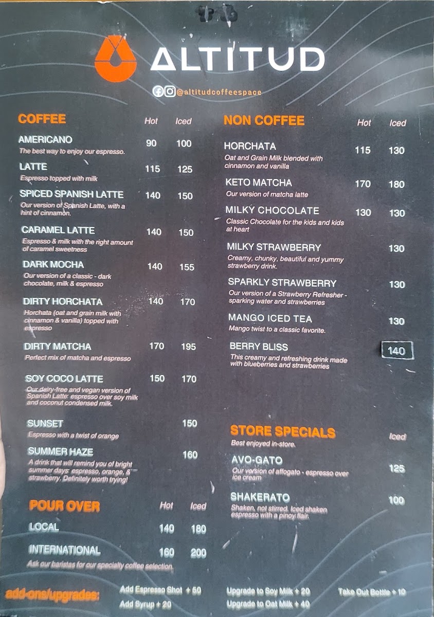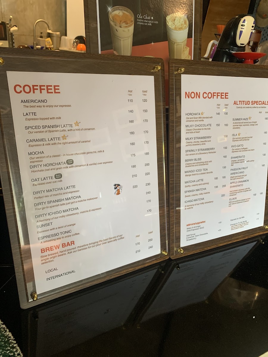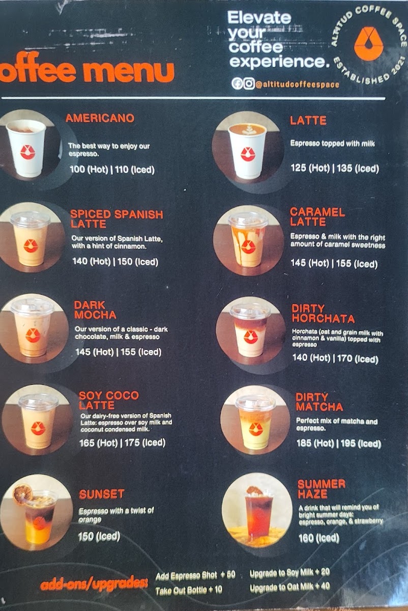 Altitud Coffee Space Menu